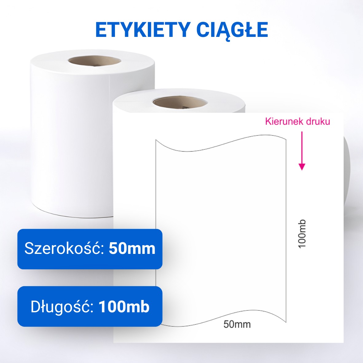 Etykieta ciągła do druku 50mm x100mb