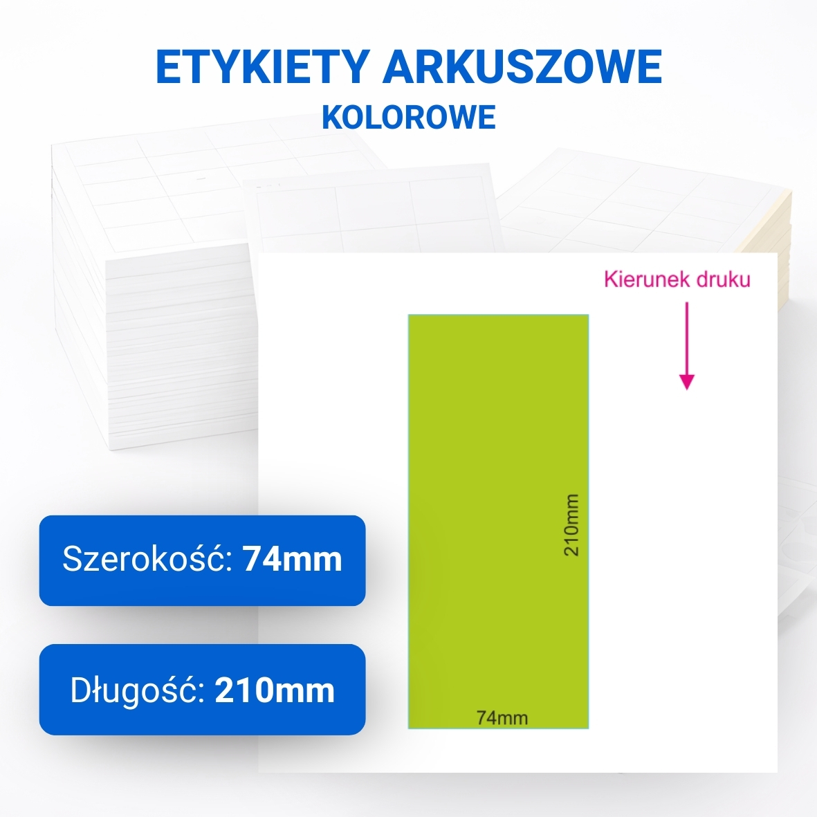 | Opis | Etykieta kartonowa 74 × 210 mm w arkuszu, zadrukowana jednostronnie kolorem |