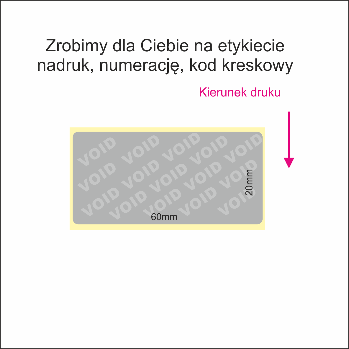 • Efekt rozwarstwienia: Przy próbie odklejenia etykieta ulega zniszczeniu, a na podłożu pozostaje czytelny napis „VOID”, wzór szachownicy lub inny komunikat ostrzegawczy.
